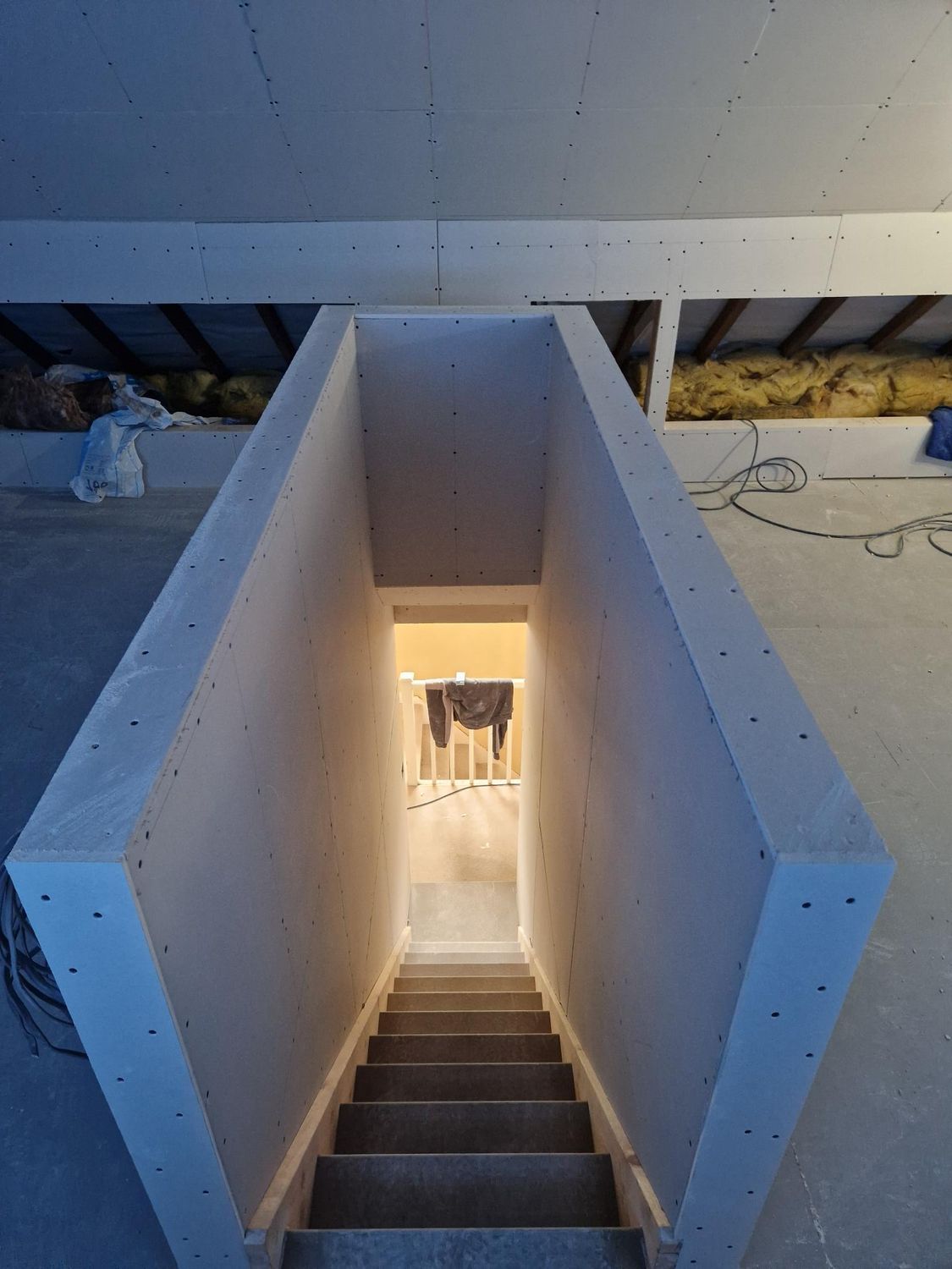The exterior of the new dormer is finished with modern Cedral cladding, providing a stylish and weather-resistant facade, complemented by a durable EPDM flat roof. The entire new space was fully insulated for year-round comfort and energy efficiency. Internally, we expertly altered an existing bedroom to create a new, seamlessly integrated stairway accessing the loft, and installed new doors throughout the entire house to unify the updated aesthetic.