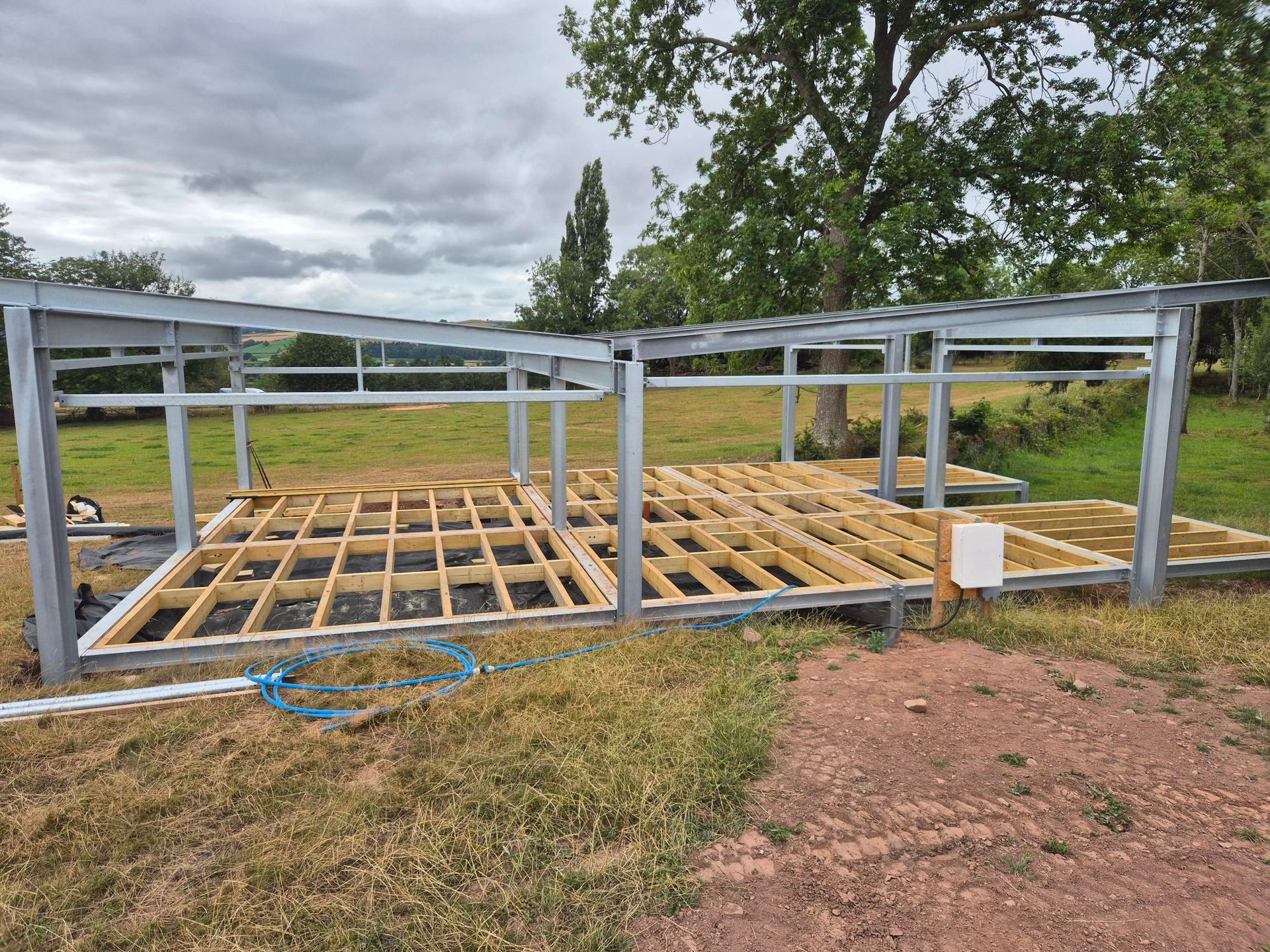 As you can see from the photos, the steel frame is now fully erected, showcasing the robust and modern design of the chalet. This steel structure provides a durable, long-lasting foundation that is built to the highest standards. The floor joists are in place, creating the skeleton of the living space and defining the layout of the rooms.