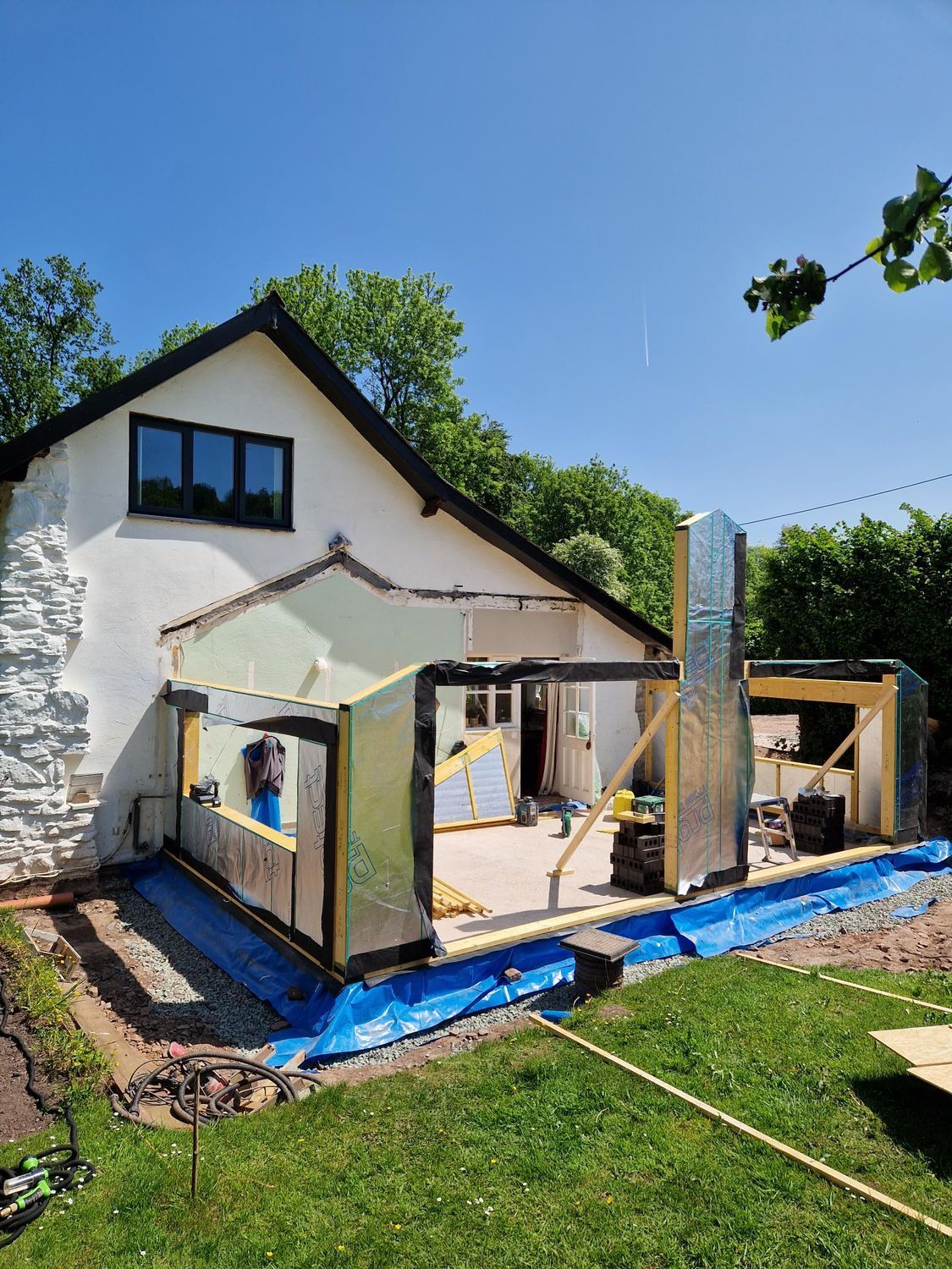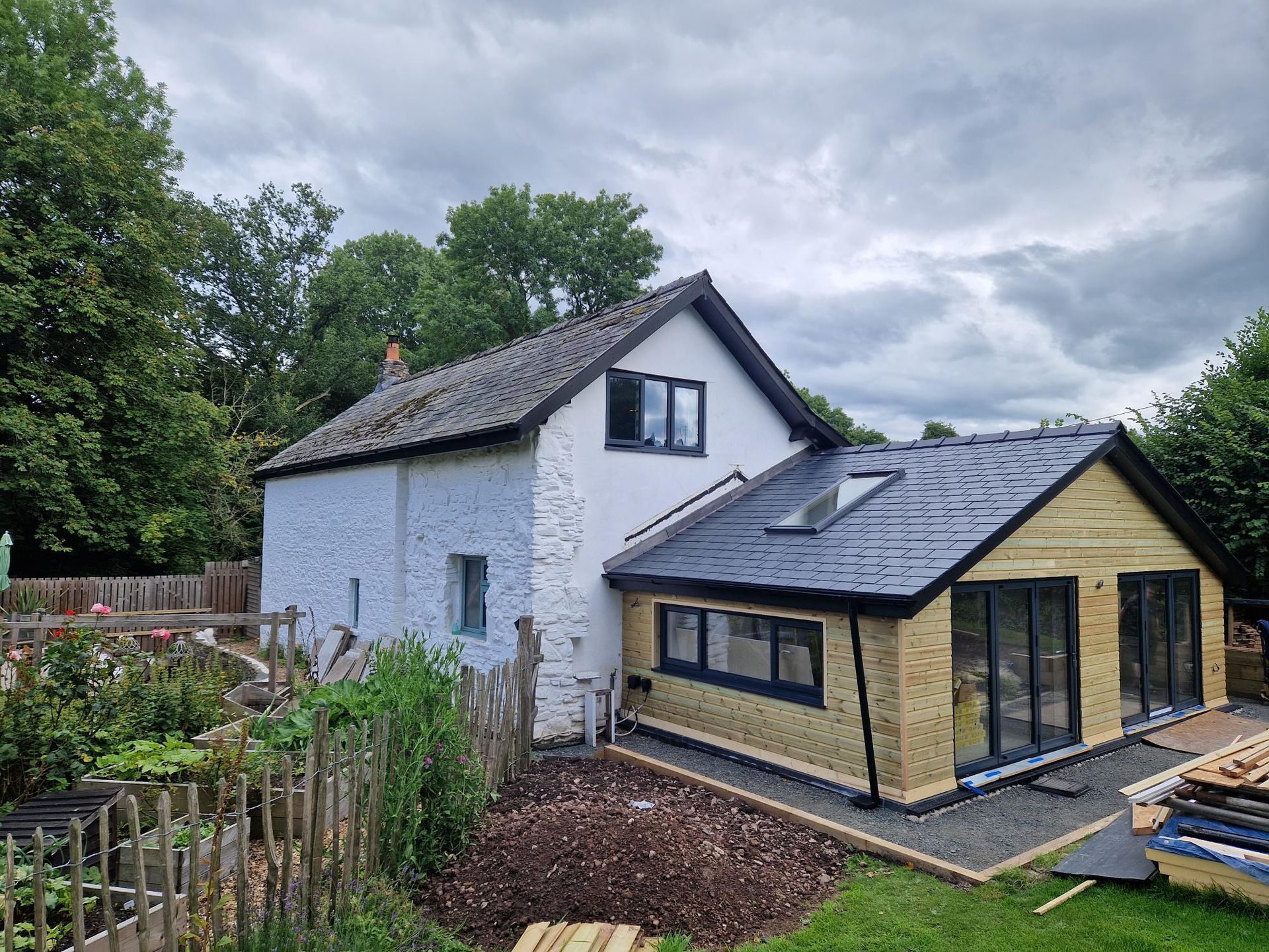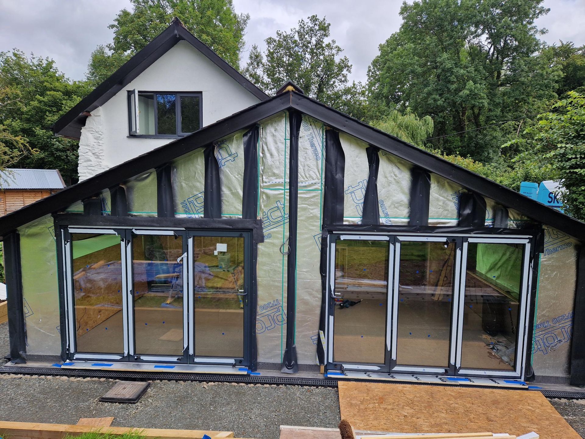 We completed a fantastic single-storey extension at Tretirion in Llandefalle, designed to create a large, open-plan kitchen and sitting area. To achieve this, we took down a considerable 7 metre section of the original house wall.