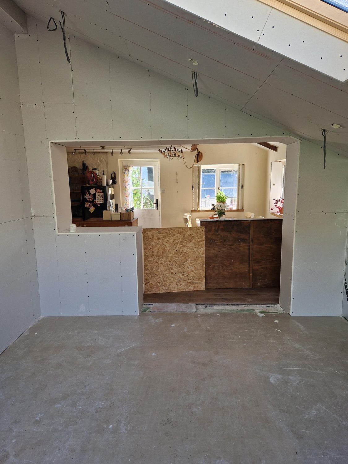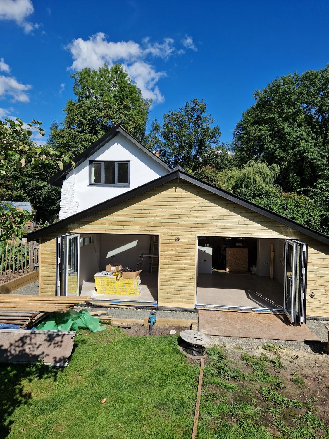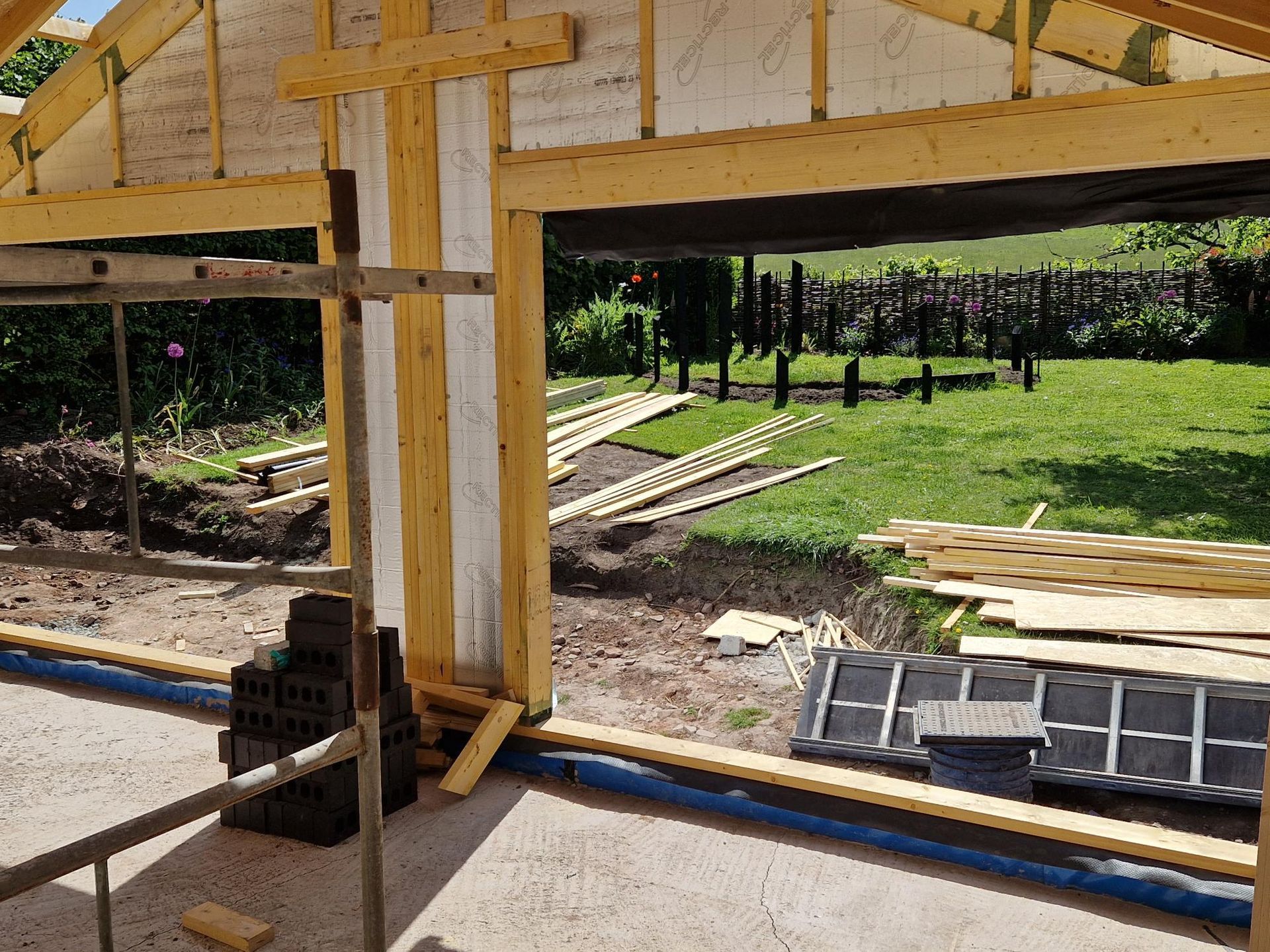 We completed a fantastic single-storey extension at Tretirion in Llandefalle, designed to create a large, open-plan kitchen and sitting area. To achieve this, we took down a considerable 7 metre section of the original house wall.