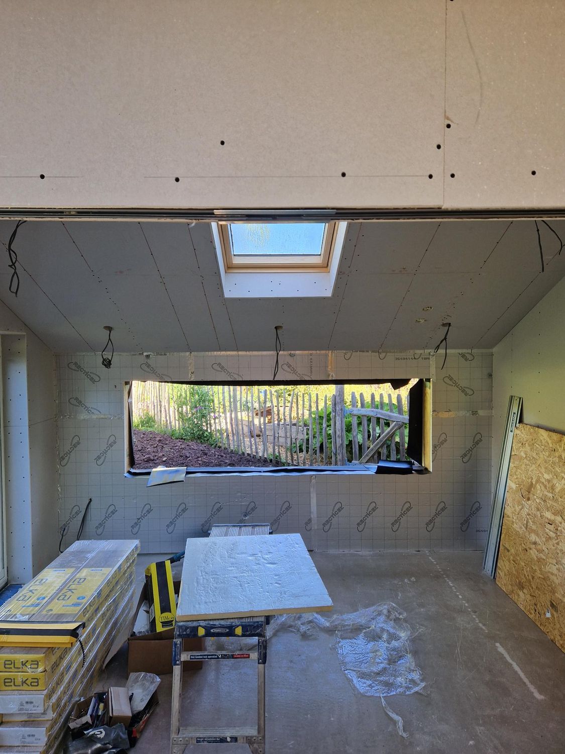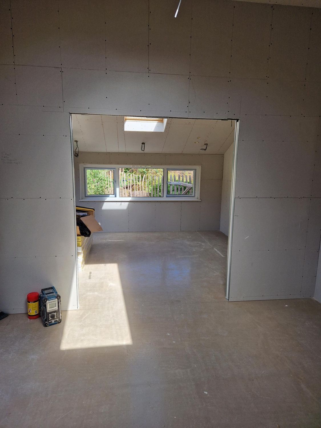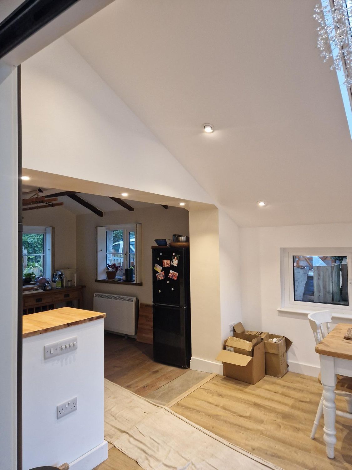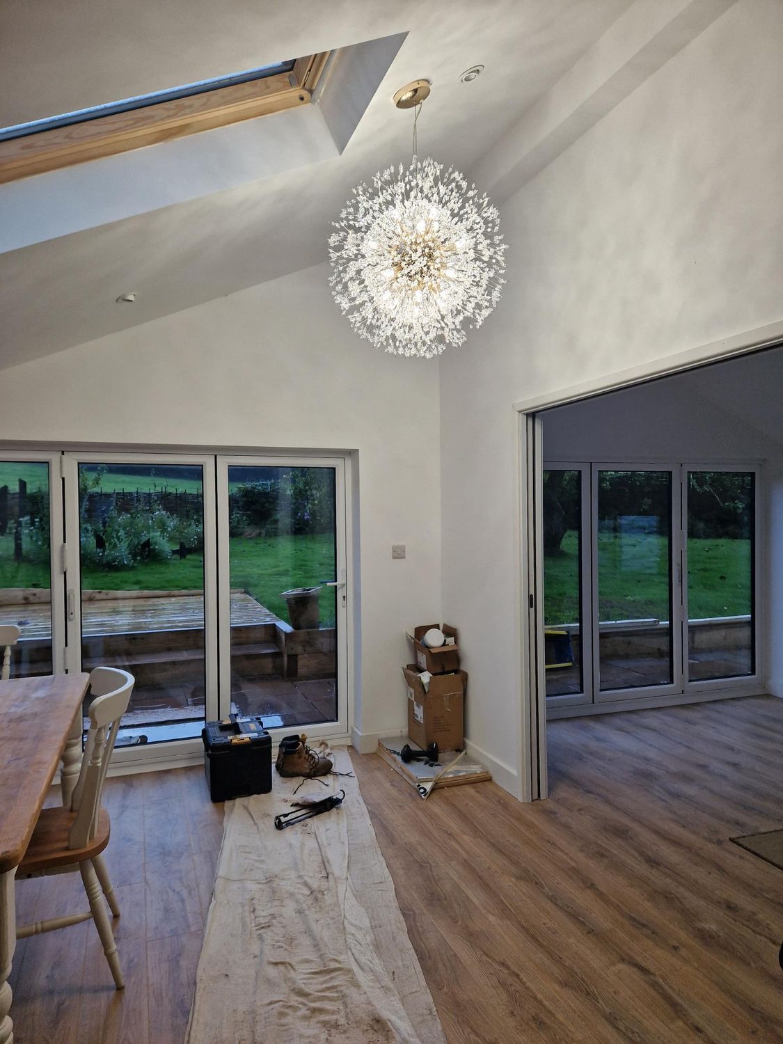 The extension features a huge rooflight that floods the space with natural light, along with sleek aluminium windows and sliding doors. We handled all the groundwork and drainage, using traditional construction techniques, and finished the outdoor area with beautiful porcelain slabbing. It's now a wonderfully bright and functional heart of the home.