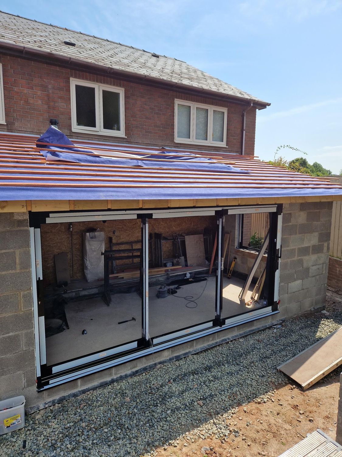 We completed a fantastic single-storey extension at Ty Fynnon in Llanfihangel Talyllyn, designed to create a large, open-plan kitchen and sitting area. To achieve this, we took down a considerable 7 metre section of the original house wall.