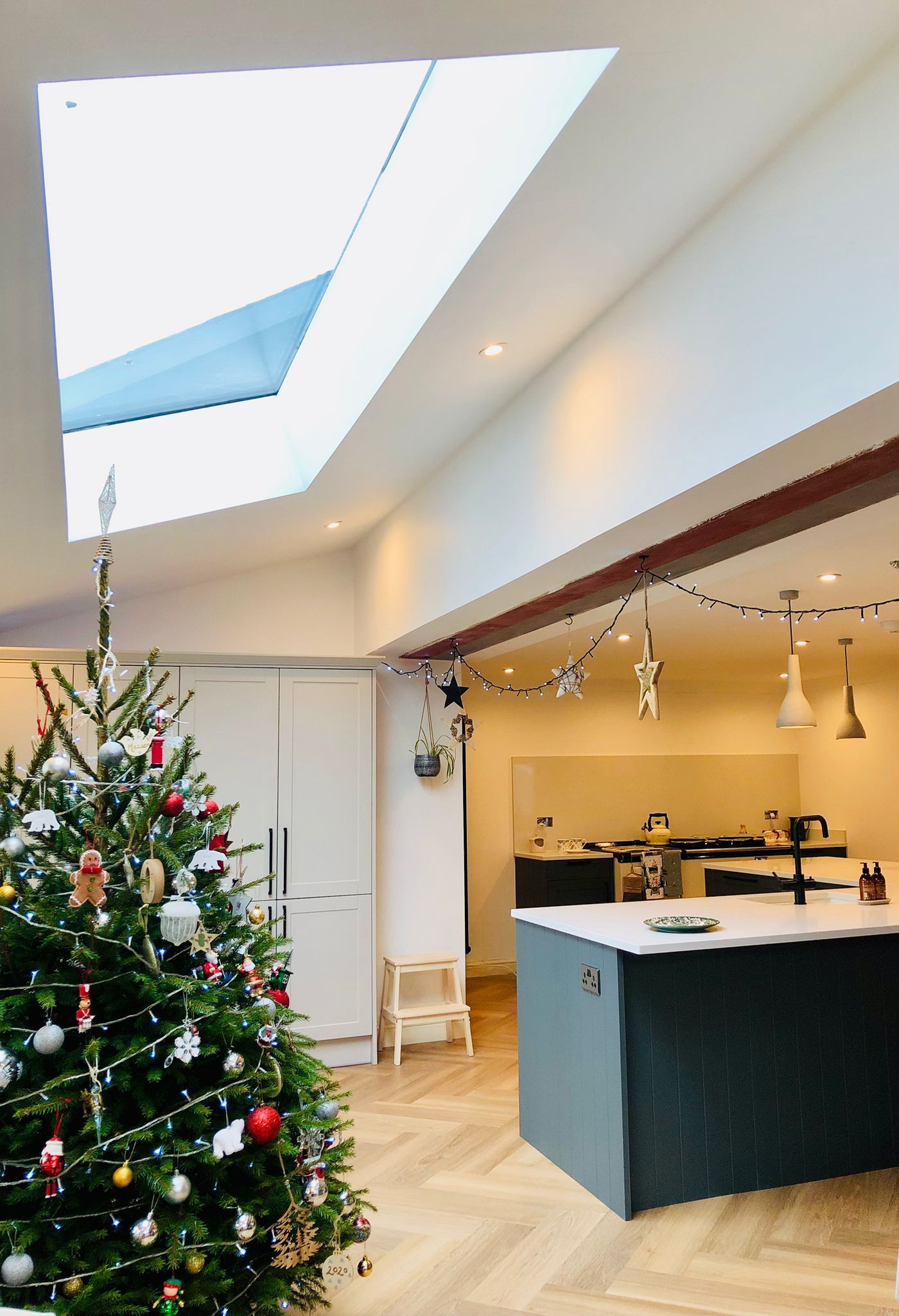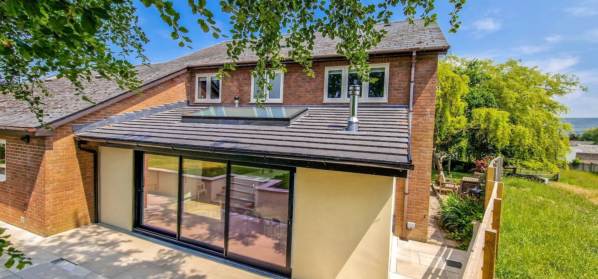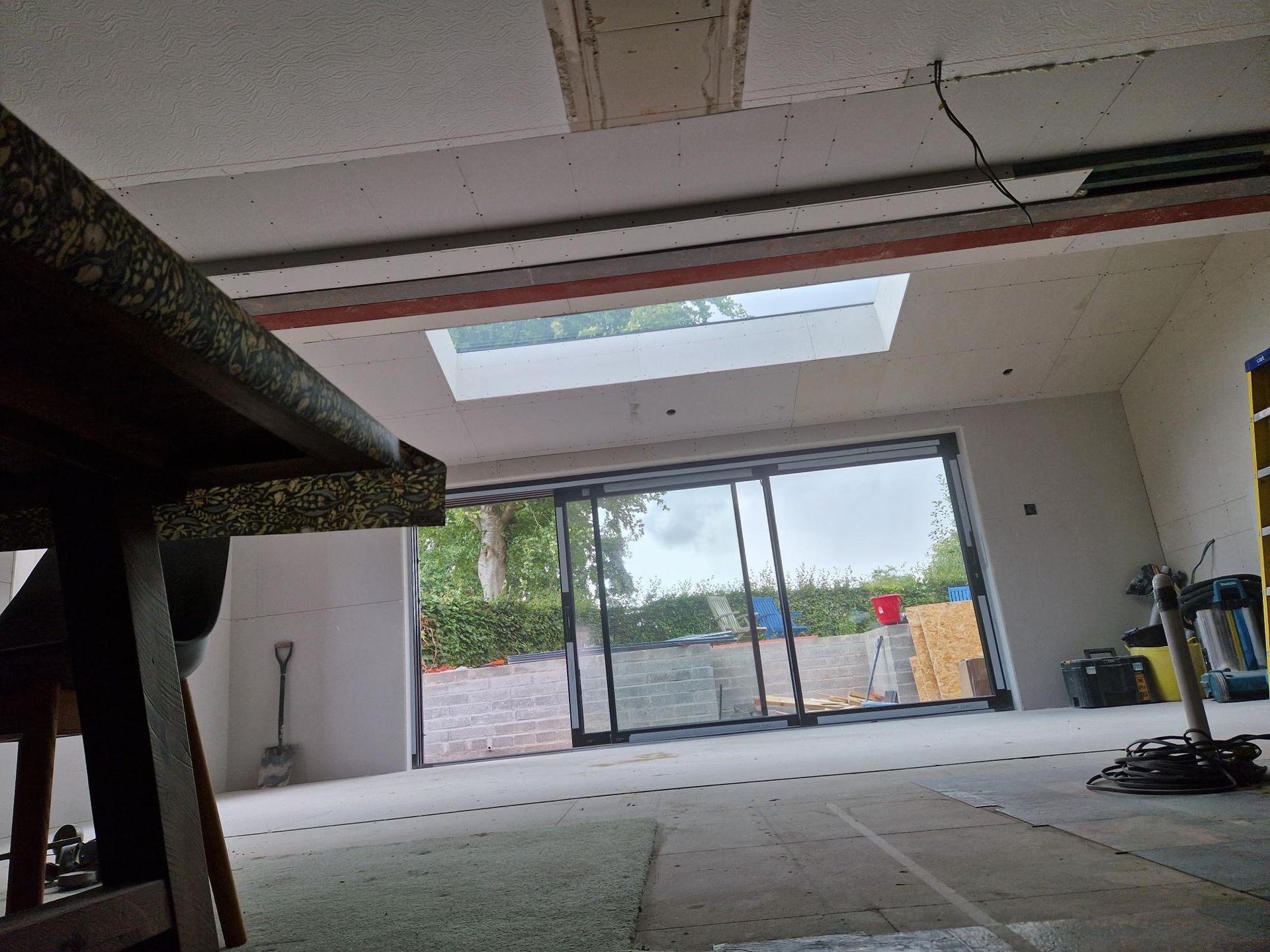The extension features a huge rooflight that floods the space with natural light, along with sleek aluminium windows and sliding doors. We handled all the groundwork and drainage, using traditional construction techniques, and finished the outdoor area with beautiful porcelain slabbing. It's now a wonderfully bright and functional heart of the home.